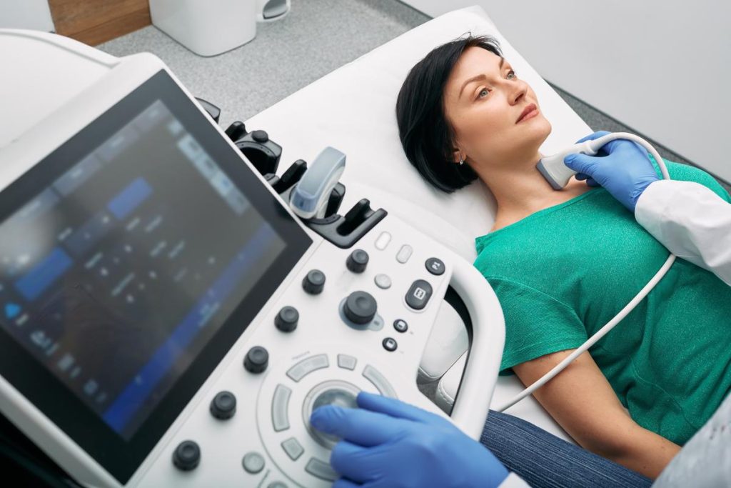 - Tiroid ultrasonu: Ultrasonografi, tiroid bezinin boyutunu, yapısını ve varsa nodülleri görmek için kullanılır. Ultrason, guatrın tipini ve büyüklüğünü belirlemeye yardımcı olur.